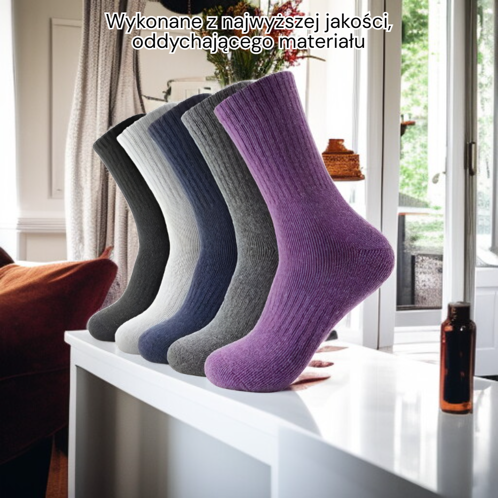 ● Elastyczny ściągacz gwarantuje idealne dopasowanie do stopy, nie uciskając i nie pozostawiając śladów na skórze.