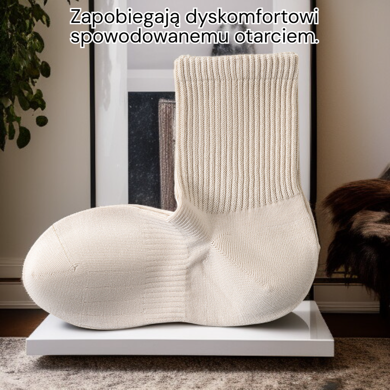 ● Bezszwowa konstrukcja długich skarpetek gwarantuje maksymalny komfort noszenia przez cały dzień, eliminując dyskomfort spowodowany otarciami.