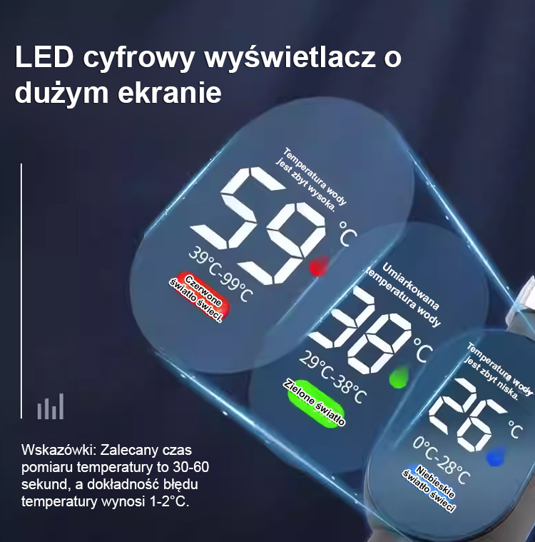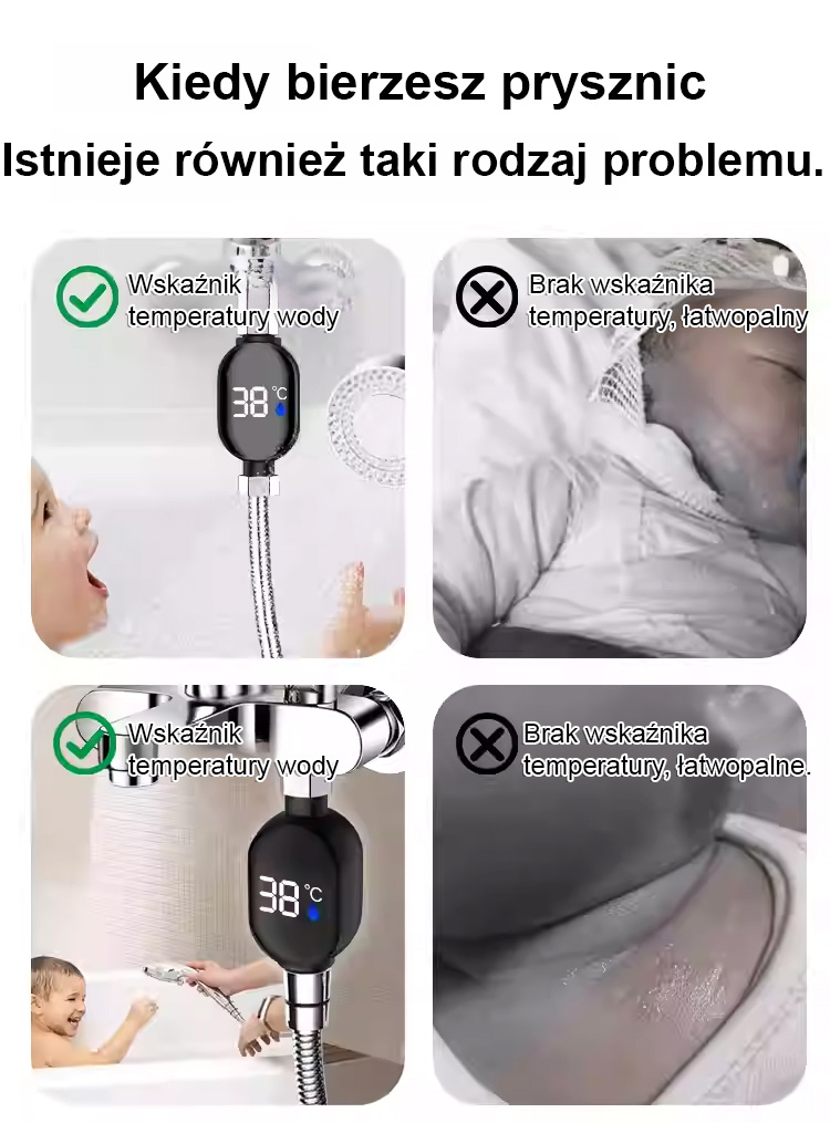 Wodoodporność i odporność na wybuchy + precyzyjny pomiar temperatury, dzięki czemu cała rodzina może łatwiej kontrolować temperaturę podczas kąpieli pod prysznicem.