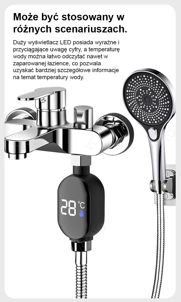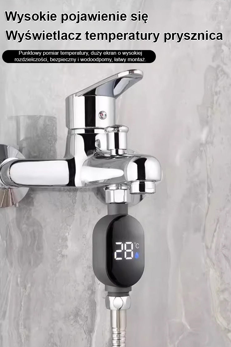 Wyświetlacz temperatury do inteligentnego, wodoodpornego prysznica. Stopień wodoodporności IPX7 + cyfrowy wyświetlacz w czasie rzeczywistym