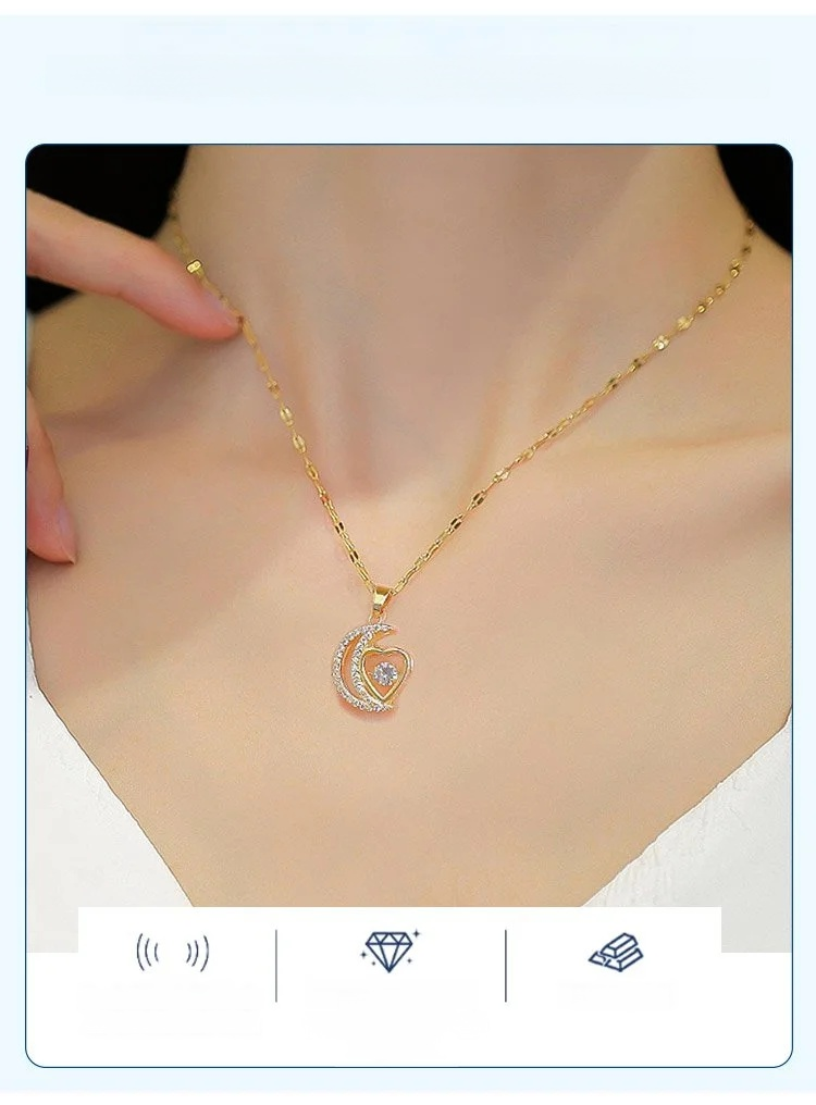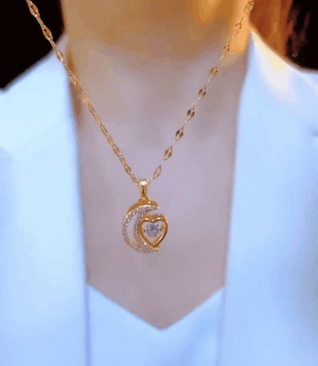 [Personalizacja Na NajwyżSzym Poziomie] Elegancki Naszyjnik Z KsiężYcem W KształCie Serca, Zdobiony Intarsjami Z CzasóW Polskiej Sztuki Sprzed WiekóW
